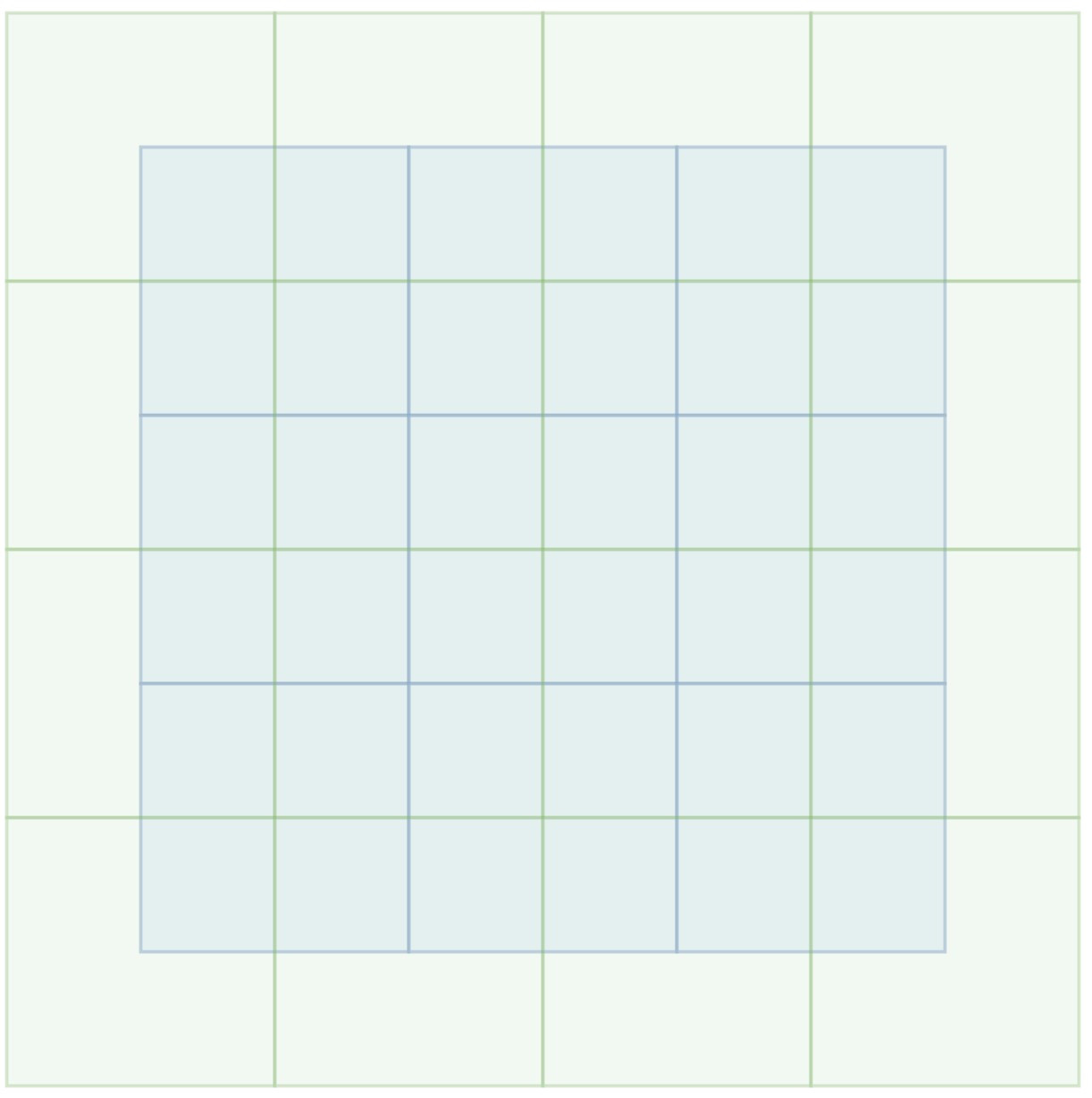 The idea is to lay out your GIProbes and game world into offset chunks like this (blue squares are chunks of the map, green squares are GIProbes):