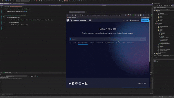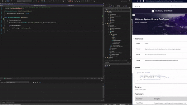 While navigating the painful experience of getting an IDE that works well with unreal engine, I found a neat UnrealVsCodeHelper extension that had a built in browser for the documentation. I’m still not entirely convinced on using VS Code for UE (yet?), but I did really enjoy this idea and would have liked it to have it in Visual Studio.